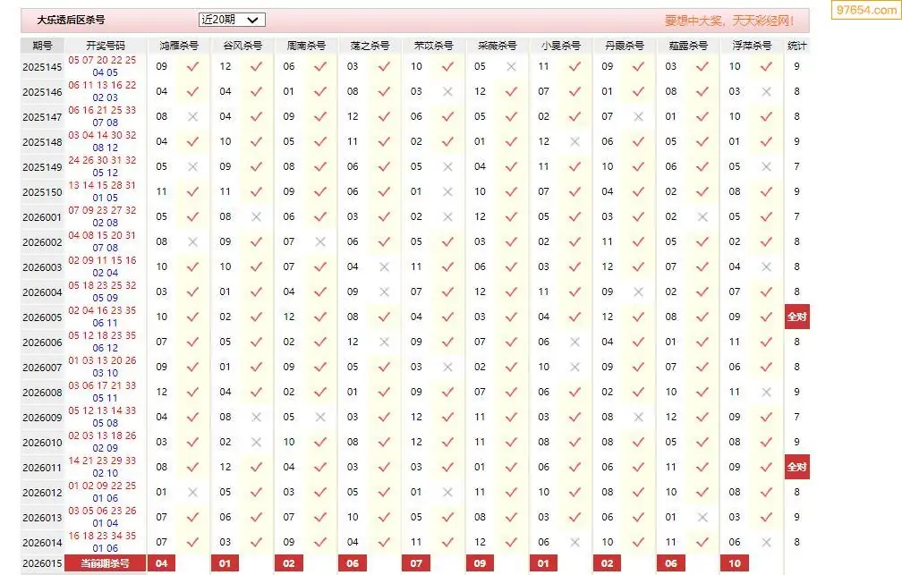 超级大乐透26015期章衣萍后区关注杀三码