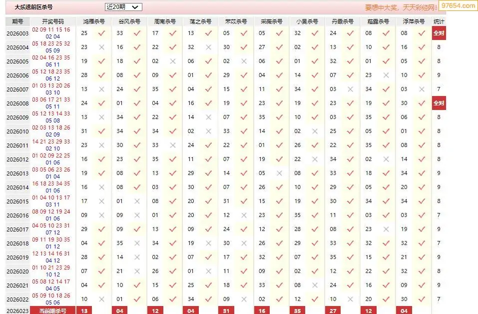 023期大乐透彩经十大专家前区杀号汇总