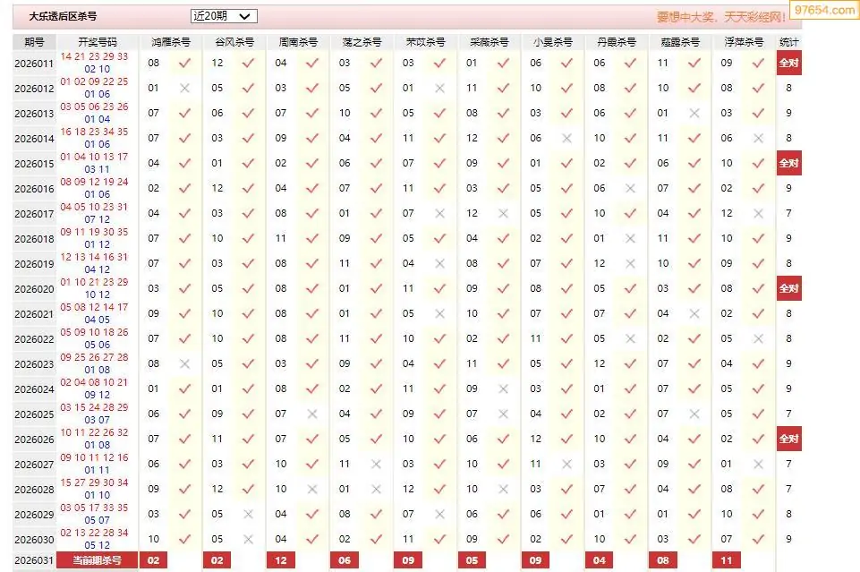 031期大乐透彩经十大专家后区杀号汇总
