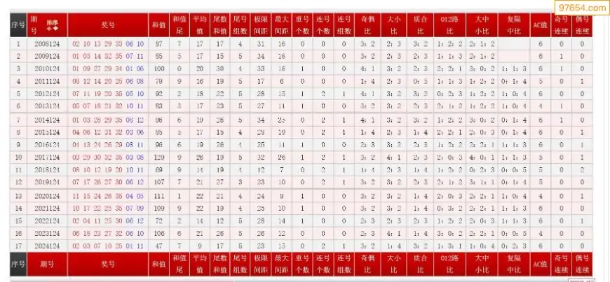 124期大乐透历史同期图表+走势图