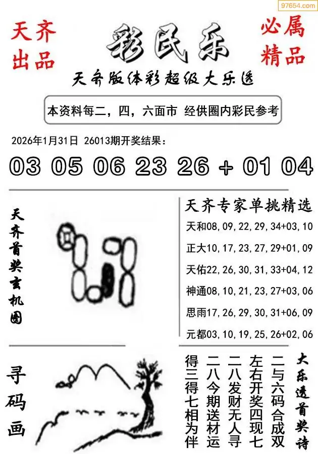迟丽颖大乐透26年016期五行七列图杀码定胆