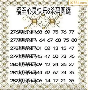 25282期福至心灵快乐8杀码图迷