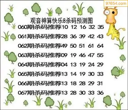 快乐8第26067期观音神算杀码图