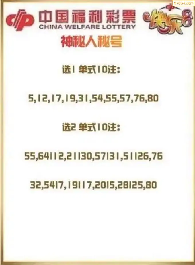 快乐8第26097期神秘人胆码四组