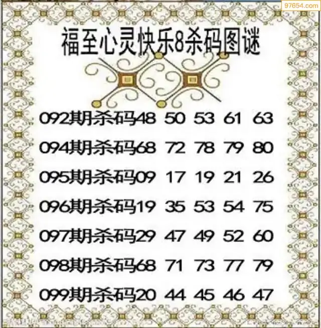 26099期福至心灵快乐8杀码图迷