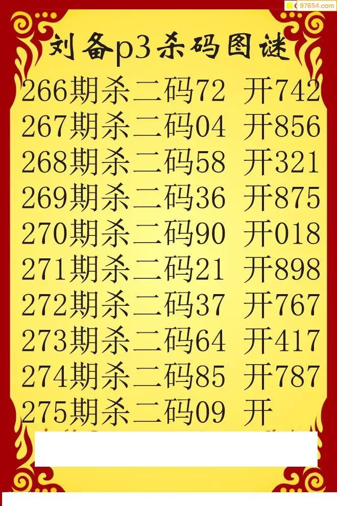 25年275期刘备p3杀码图谜