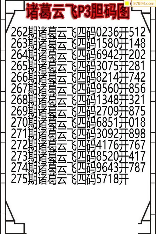 25275期诸葛云飞今期P3胆码图