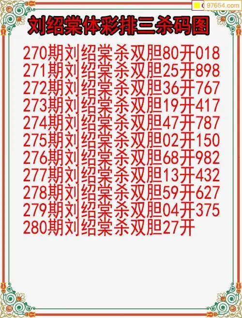 25年280期体彩排三刘绍棠杀码图