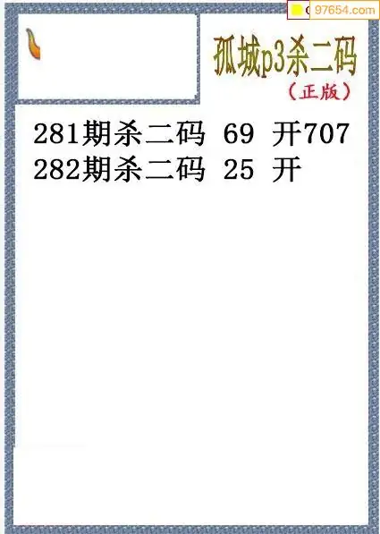 25年282期孤城本期杀码排3图谜