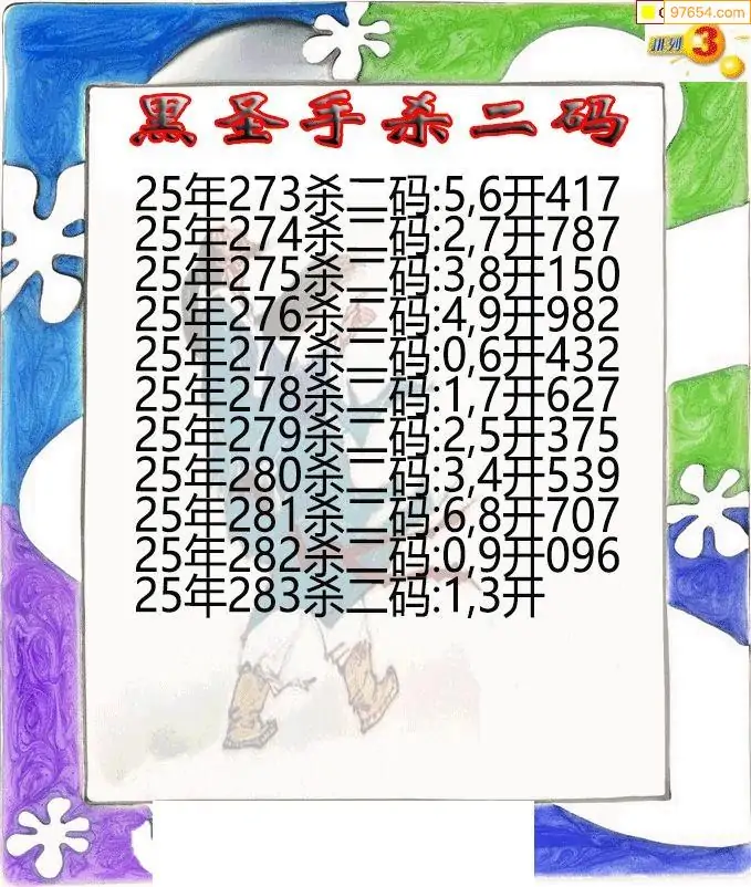 25年283期黑圣手排3杀二码图迷