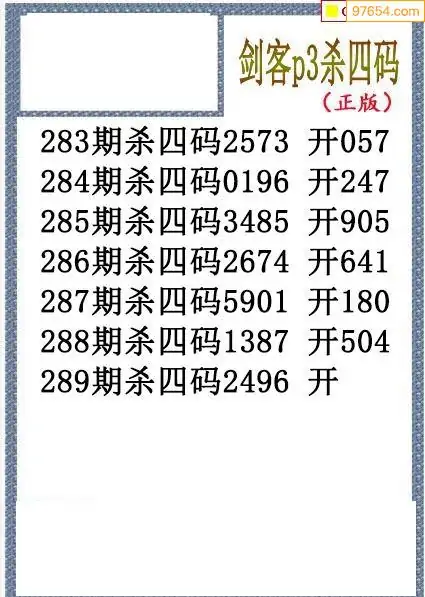 25年289期排三剑客杀码图谜
