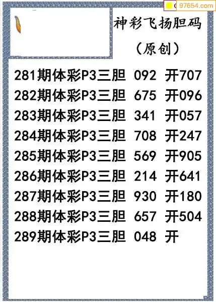 25289期神彩飞扬体彩P3三胆图谜