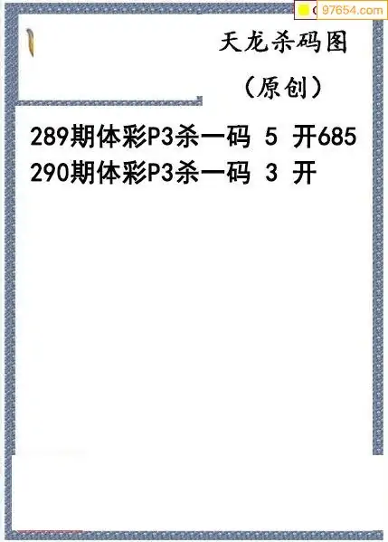 25年290期天龙体彩P3杀码图谜