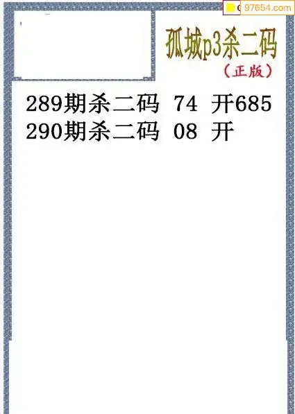 25年290期孤城本期杀码排3图谜