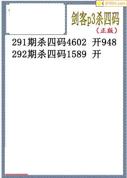 25年292期排三剑客杀码图谜