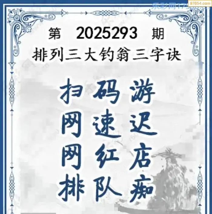 25年体彩p3第293期大钓翁三字诀