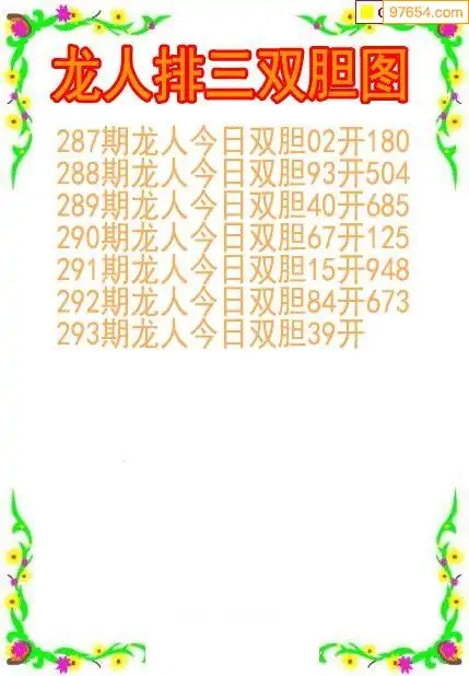 25293期龙人排列3双胆图