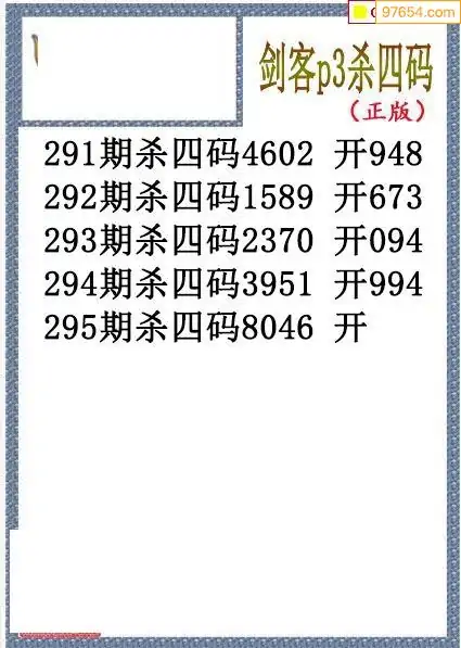25年295期排三剑客杀码图谜