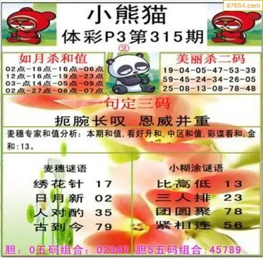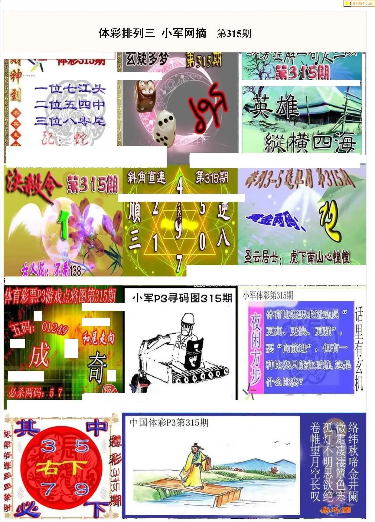 315期清清漫玄系列体彩p3图谜