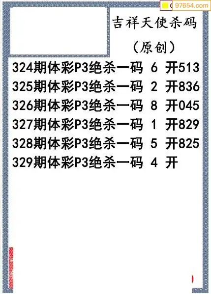 25年329期吉祥天使今日杀码图谜