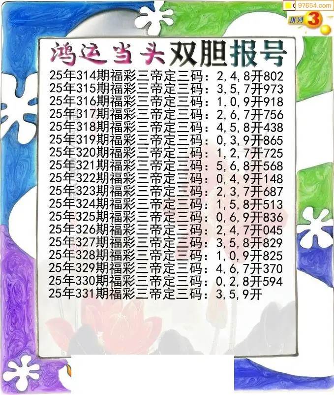 25331期鸿运当头双胆p3报号图