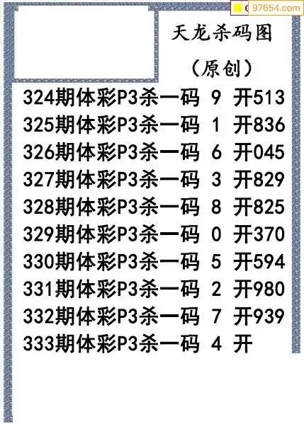 25年333期天龙体彩P3杀码图谜