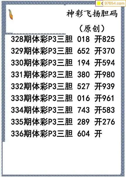 25336期神彩飞扬体彩P3三胆图谜