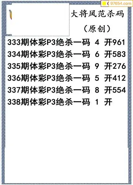 25年338期大将风范p3杀码体彩图谜
