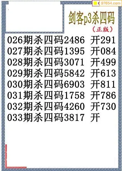 26年033期排三剑客杀码图谜