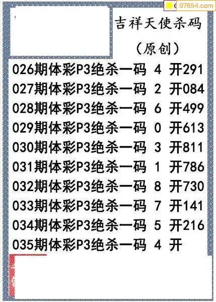 26年035期吉祥天使今日杀码图谜