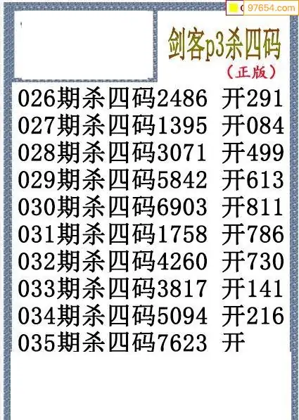 26年035期排三剑客杀码图谜