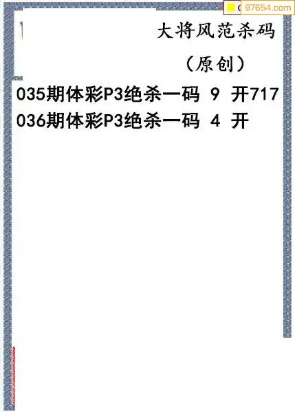 26年036期大将风范p3杀码体彩图谜