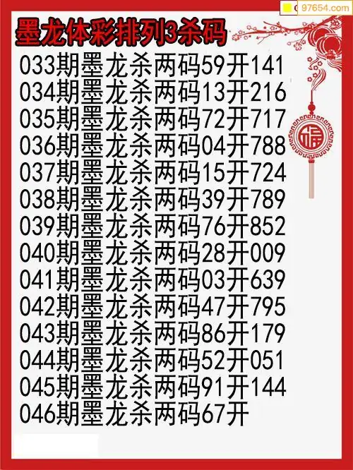 26年046期墨龙体彩排列三杀码图