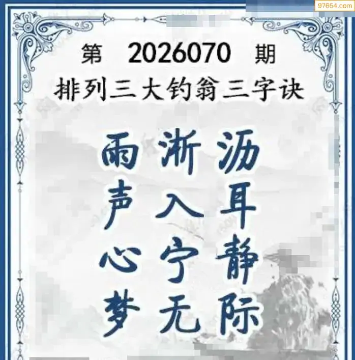 26年体彩p3第070期大钓翁三字诀