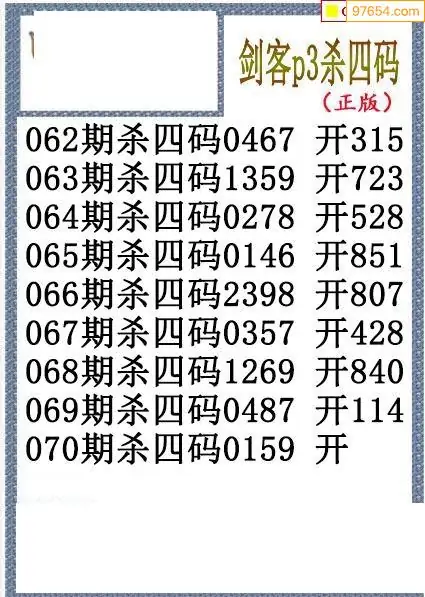 26年070期排三剑客杀码图谜