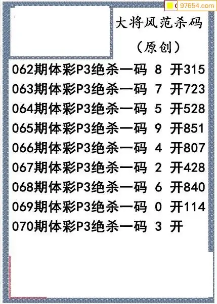 26年070期大将风范p3杀码体彩图谜