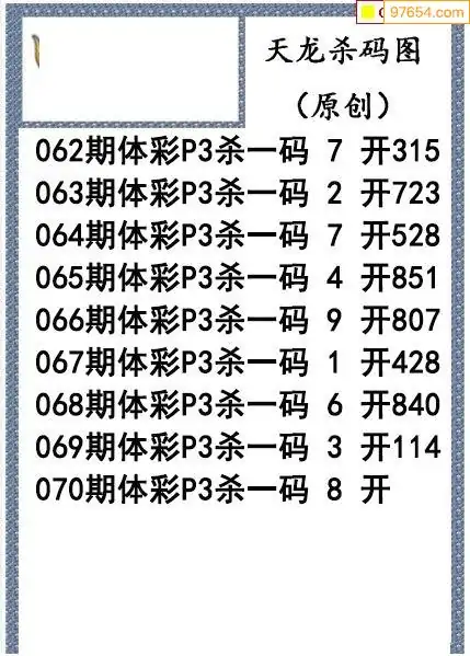 26年070期天龙体彩P3杀码图谜