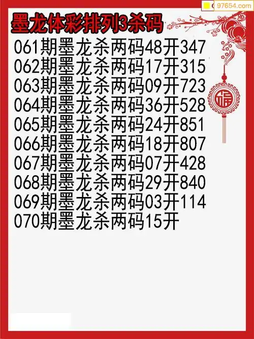 26年070期墨龙体彩排列三杀码图