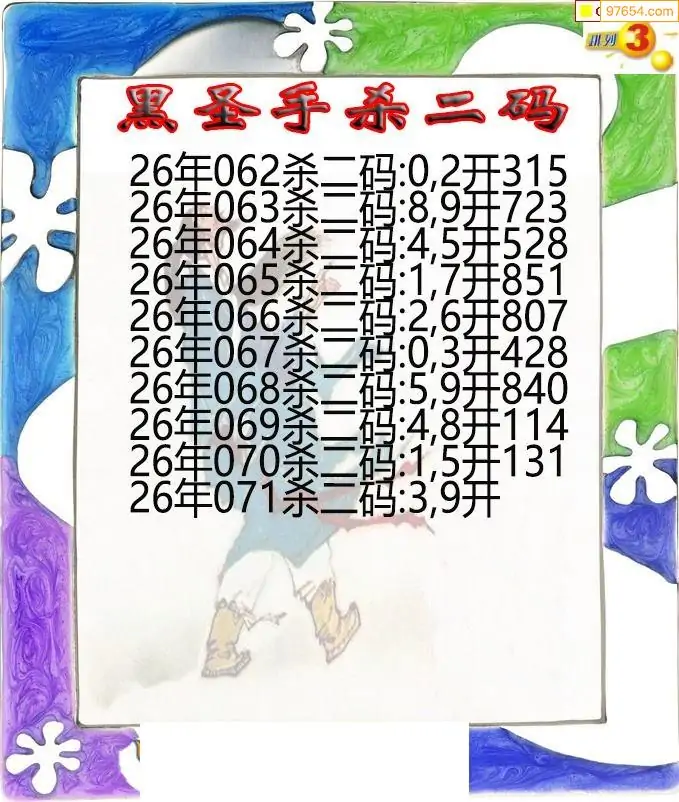 26年071期黑圣手排3杀二码图迷
