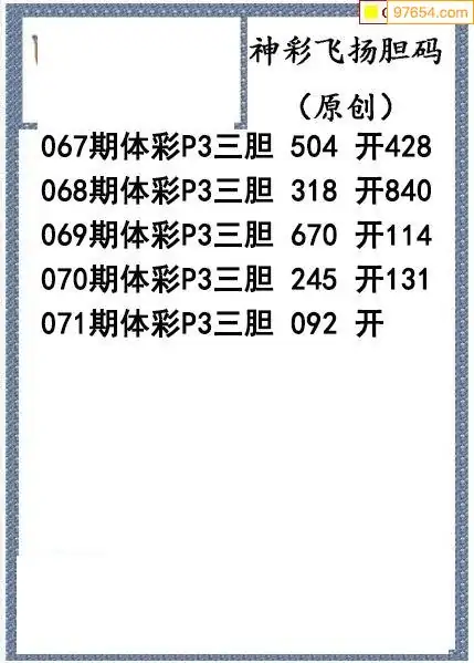 26071期神彩飞扬体彩P3三胆图谜