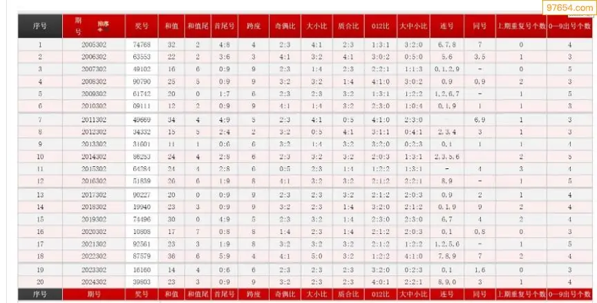 302期体彩P5历史同期对比图表+近期走势图分析