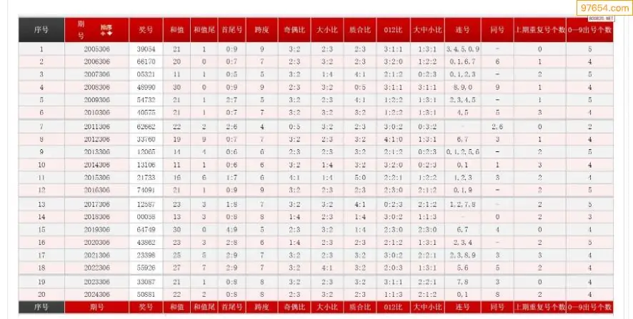306期体彩P5历史同期对比图表+近期走势图分析