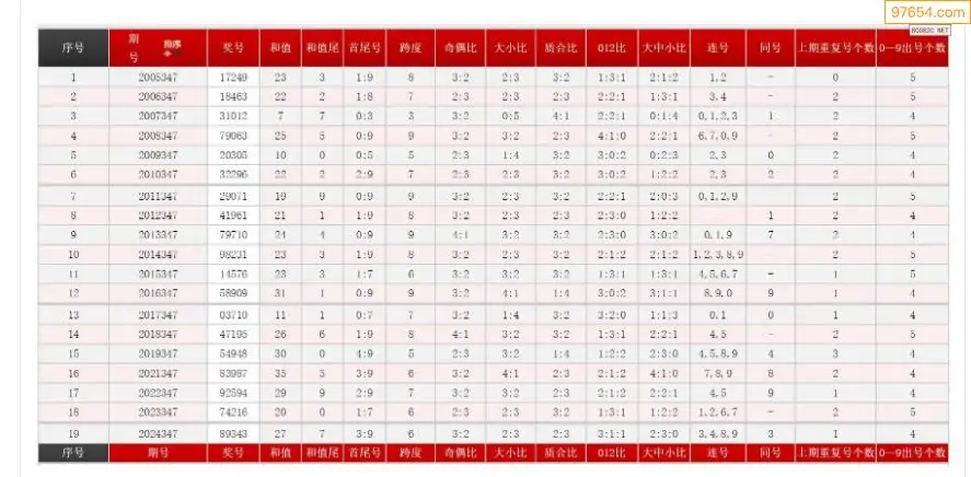 347期体彩P5历史同期对比图表+近期走势图分析