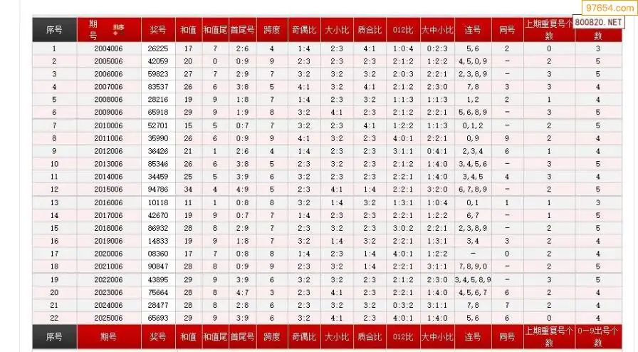 006期体彩P5历史同期对比图表+近期走势图分析