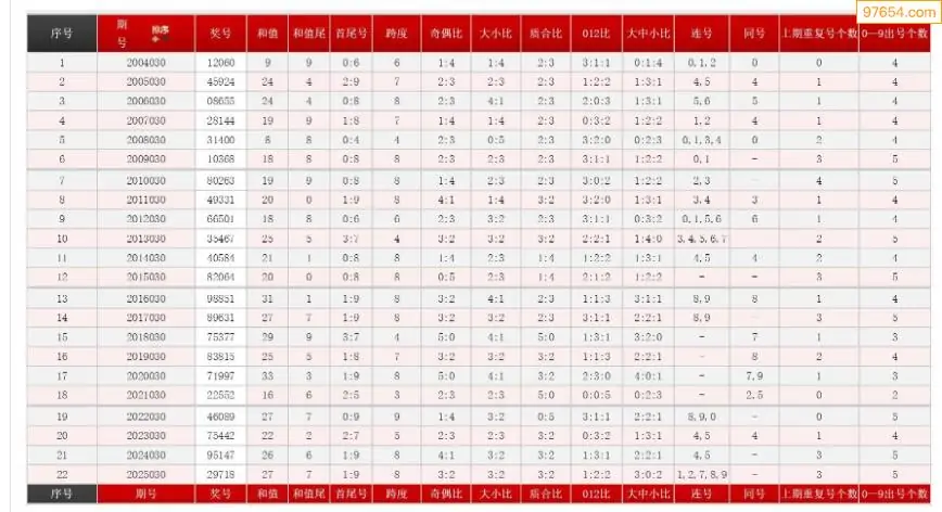 030期体彩P5历史同期对比图表+近期走势图分析