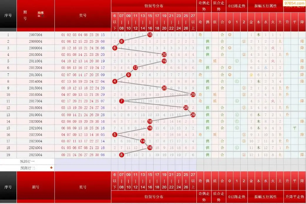 004期七乐彩历史同期图表+走势图