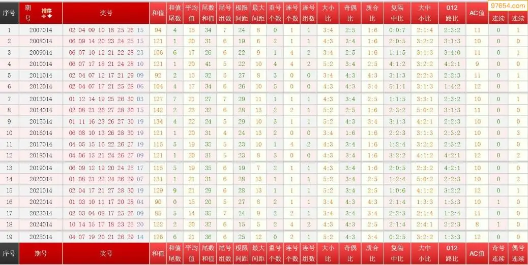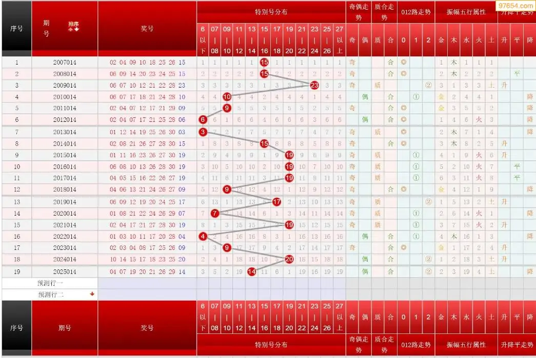 014期七乐彩历史同期图表+走势图