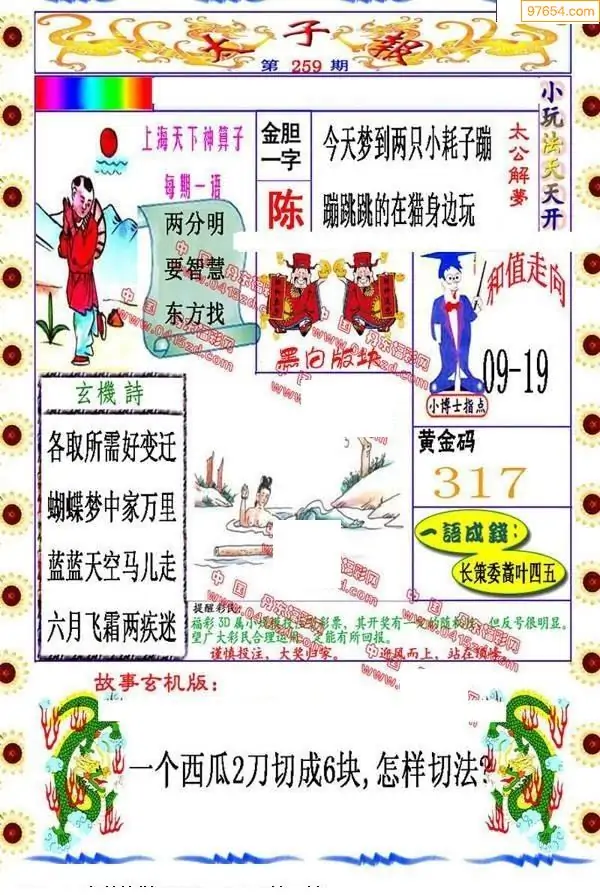 259期福彩太子报红五图库