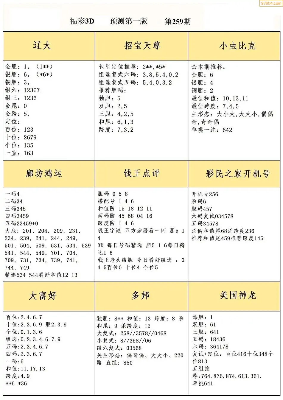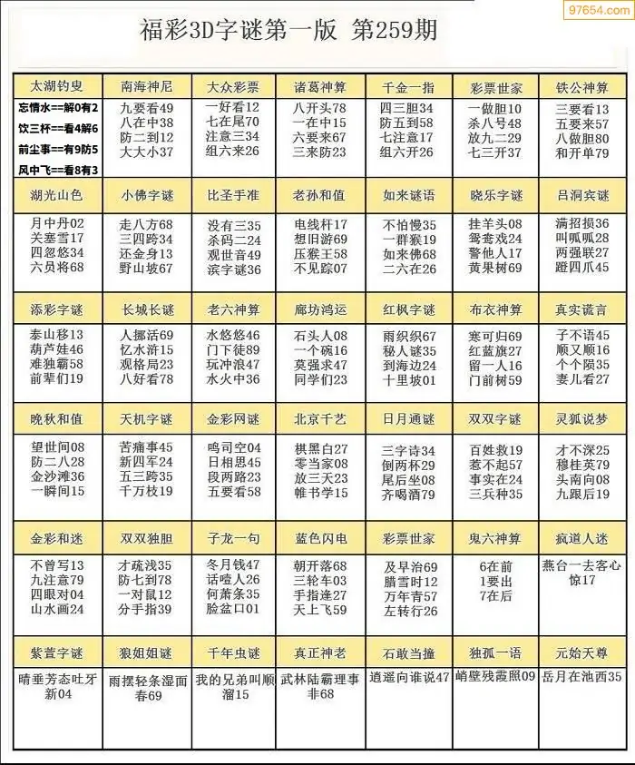 25259期3D天中原创预测字谜报