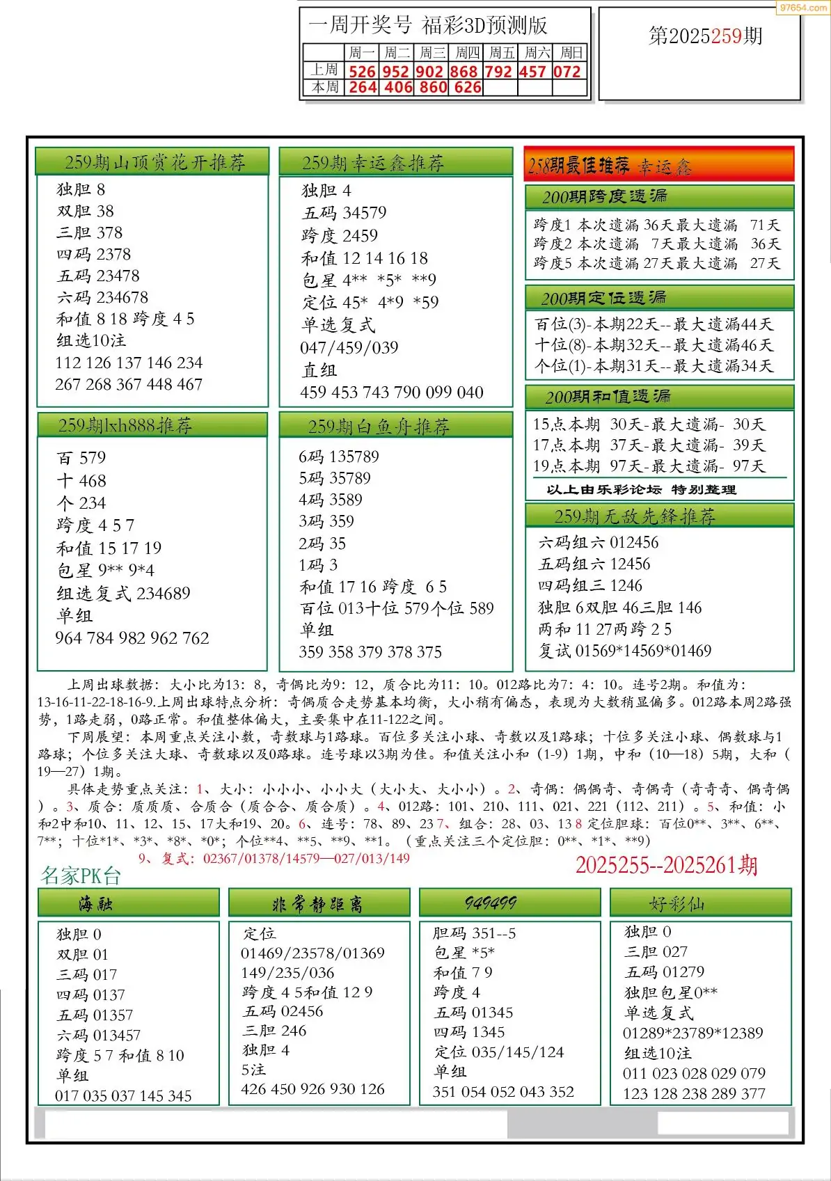 25年264期3D各板块资料整合汇总